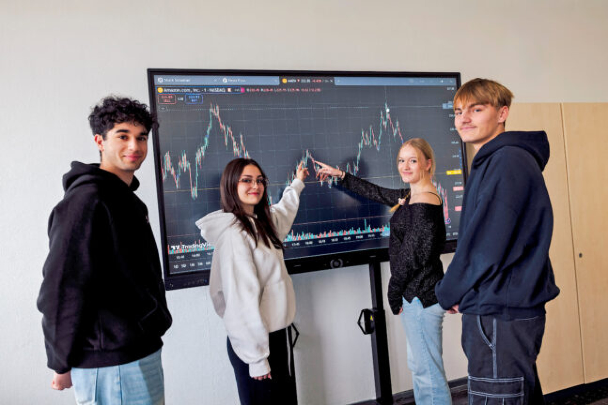 Mitmachen beim größten Börsen-Planspiel Europas mit mehr als 100.000 Teilnehmern aus Deutschland und anderen europäischen Ländern können auch Schulklassen. So auch die 11. Klasse des Wirtschaftsgymnasiums am Berufskolleg Ostvest. „Am Planspiel lässt sich sehr schön demonstrieren, wie Märkte funktionieren“, sagt Lehrerin Dr. Gundula Grewe, die mit ihren Klassen schon mehrfach und sogar siegreich teilgenommen hat. „Und die Börsen sind auch ein Frühindikator für die Konjunkturentwicklung.“ Zum Start hat sie eine Unterrichtsstunde dem Planspiel gewidmet, nun laufe das so nebenher. „Wenn bestimmte Aktien einbrechen, wie zuletzt KI-Werte, thematisieren wir das auch im Unterricht und analysieren die Gründe.“