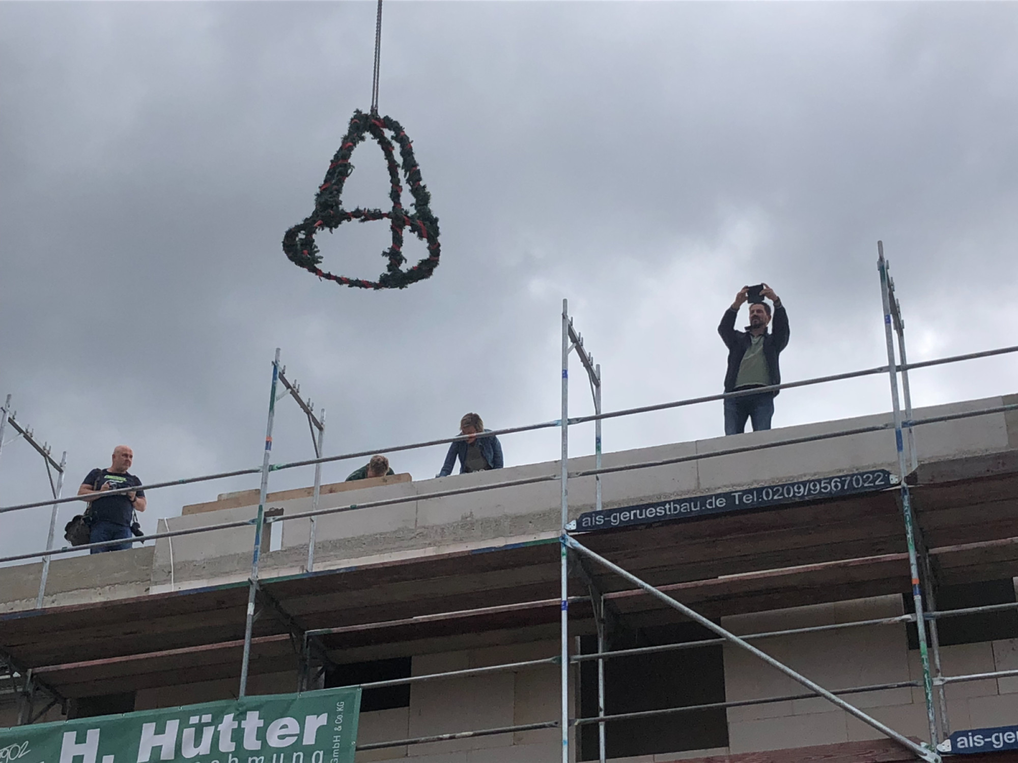 Projektentwickler und Investoren Rolf und Andreas Schettler von der gleichnamigen Immobilien-Gruppe in Herten, haben am Freitag, den 15. Juli 2022, um 12.00 Uhr, den letzten Nagel im Dachgebälk des neuen Seniorenwohnhauses versenkt und die Richtkrone aufgezogen.